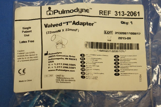 Pulmodyne 313-2061 Valve "T" Adapter 22mm x 22mm