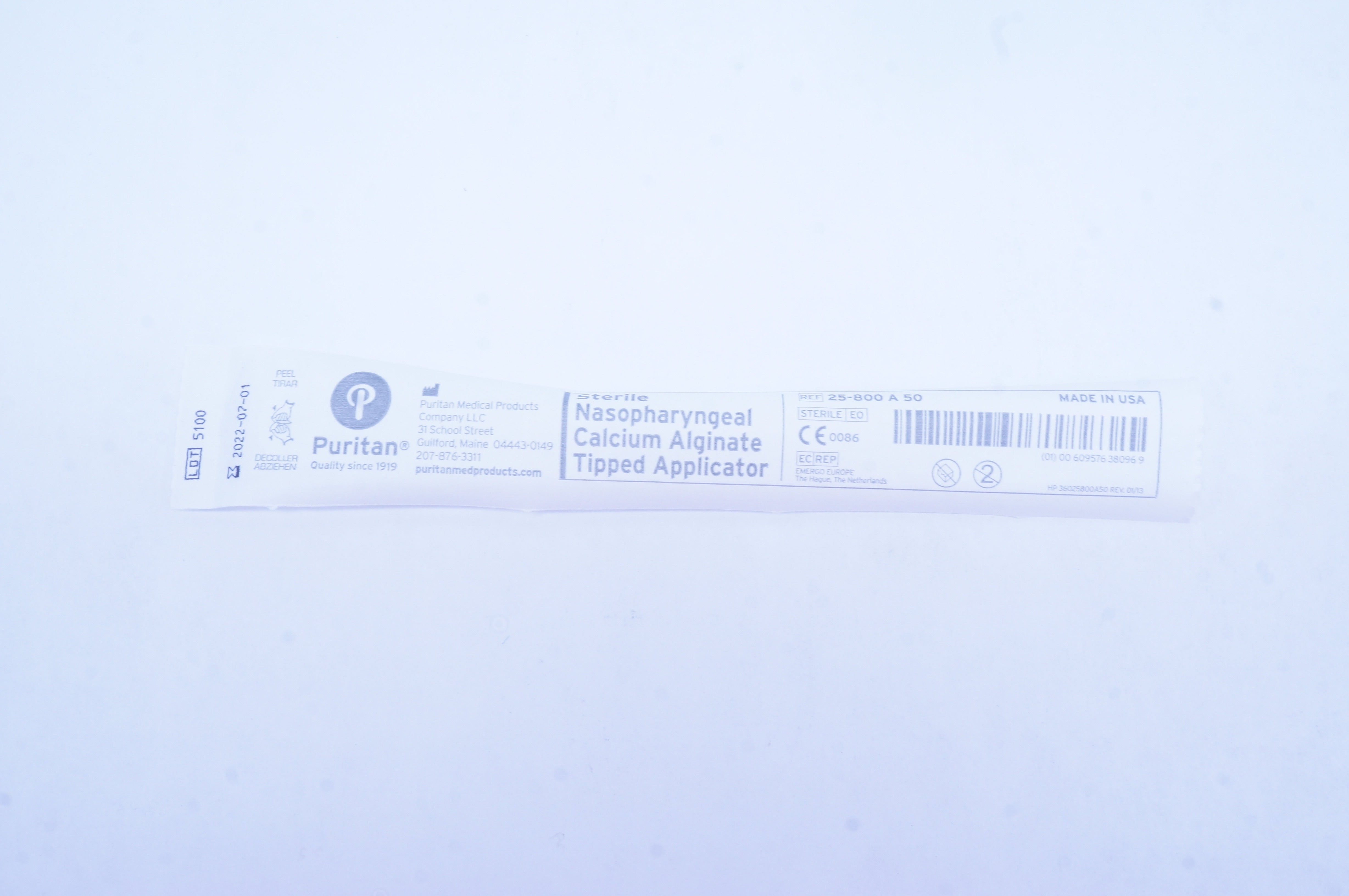 Puritan 25-800A50 Sterile Nasopharyngeal Calcium Alginate Tipped Applicator