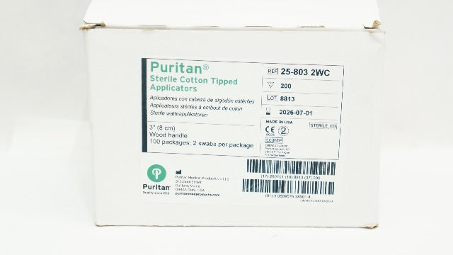 Puritan 25-803 2WC Sterile Cotton Tipped Applicators 3 inch - Box of 200