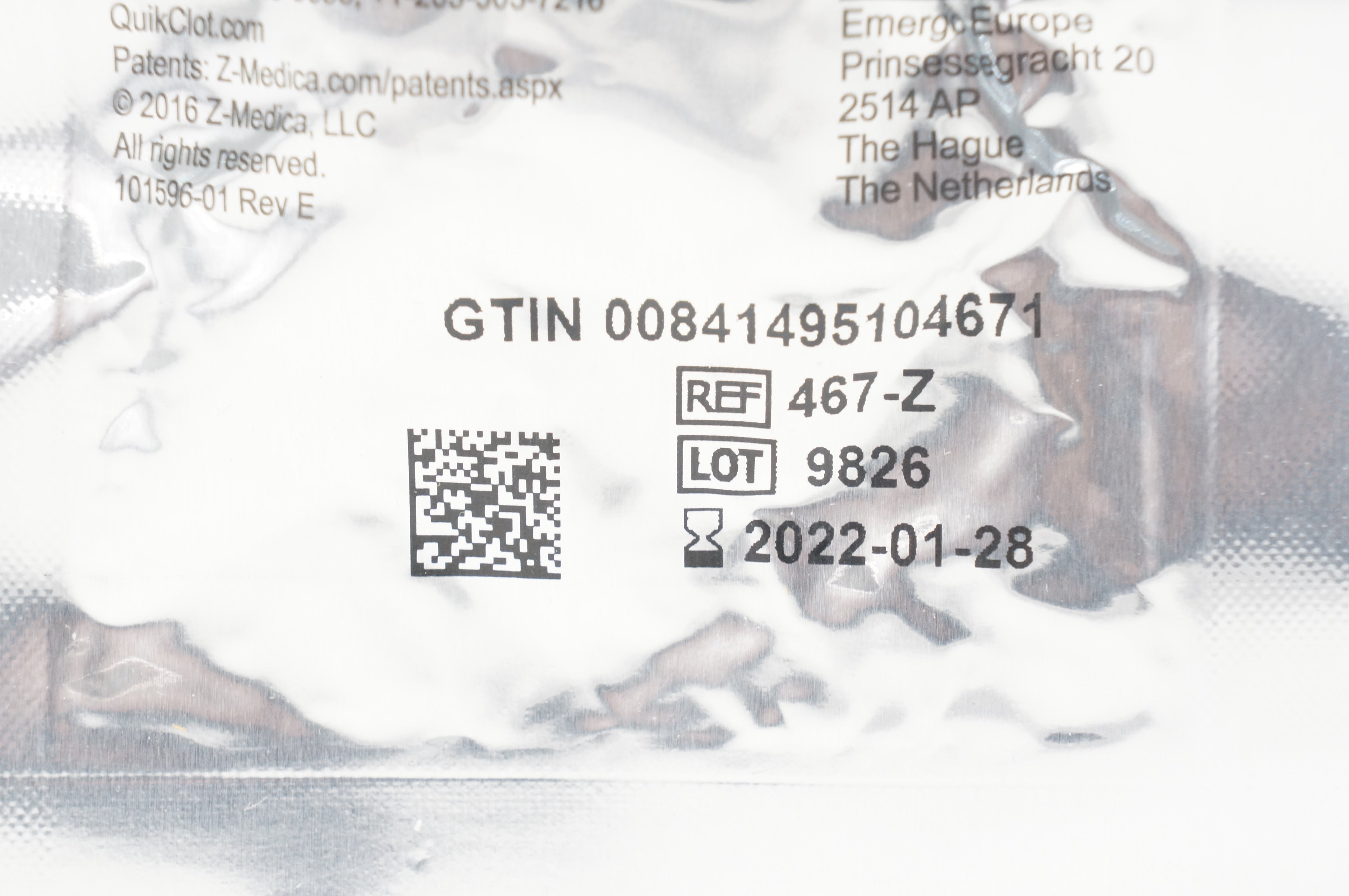 QuickClot 467-Z Interventional 1.5inch x 1.5inch Hemostatic Pad