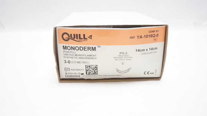 - Quill YA-1016Q-0 3-0 Monoderm PS-2 Precision Reverse Cutting 3/8c 19mm-Box of 10