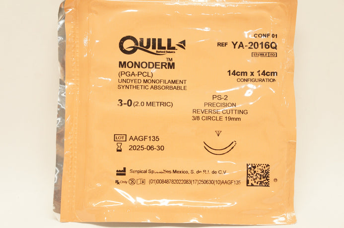 - Quill YA-2016Q Monoderm 3-0 PS-2 Precision Reverse Cutting 3/8 Circle 19mm