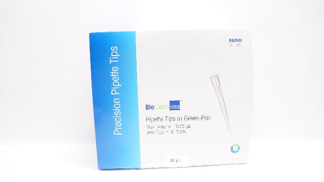 Rainin 30389274 BioClean Ultra Pipette Tips in Green-Pak 10/20µL - Box of 960