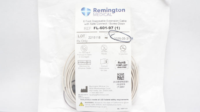 - Remington Medical FL-601-97-B 6 Foot Disposable Extension Cable (x)