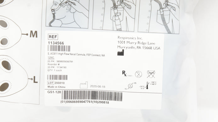- Respironics 1134566 S, AC611 High Flow Nasal Cannula, FEP Connect, NA