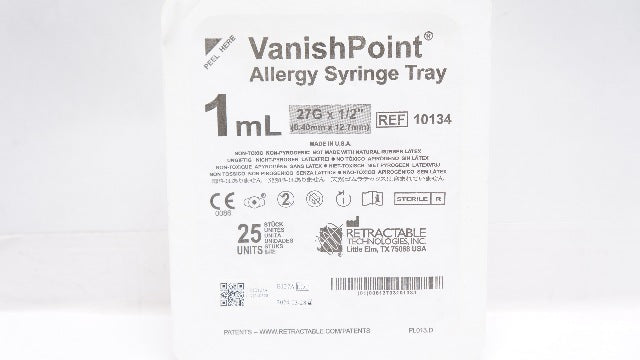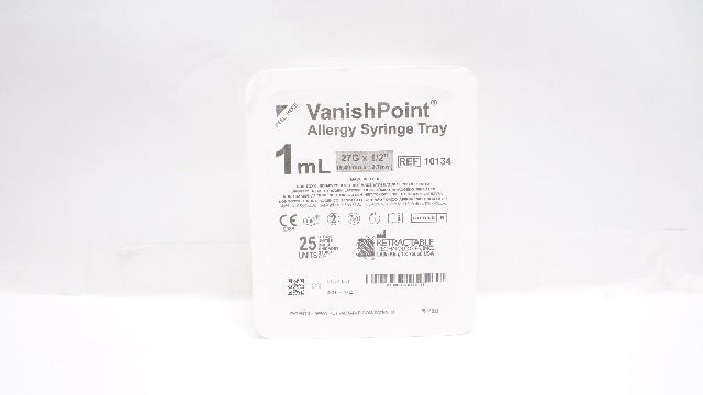 - Retractable 10134 VanishPoint 1mL Allergy Syringe Tray 27G x1/2In(x)-Pack of 25