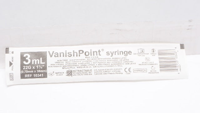 Retractable 10341 VanishPoint Syringe 3ml 22G x 1 1/2 inch