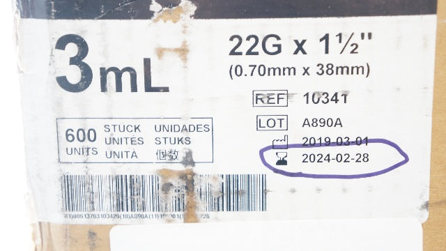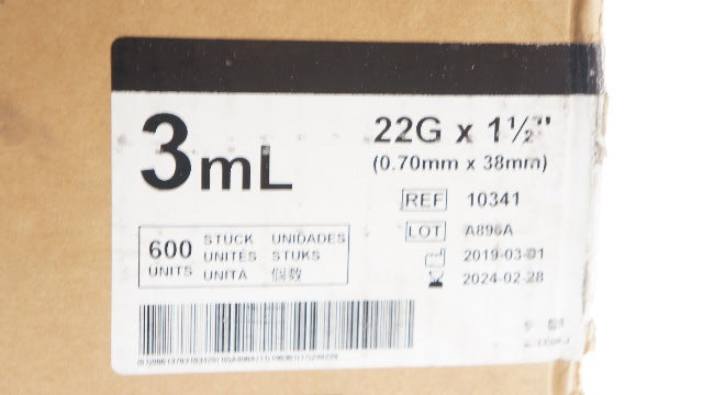 - Retractable 10341 VanishPoint Syringe 3ml 22G x 1-1/2 inch - Box of 600