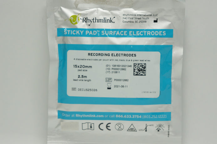 - Rhythmlink DECUS25026 Sticky Pad Surface Electrodes 15mm x 20mm Wire Length 2.5m