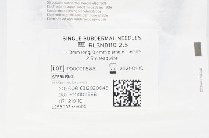- Rhythmlink RLSND110-2.5 Single Subdermal Ndles 2.5m (x)