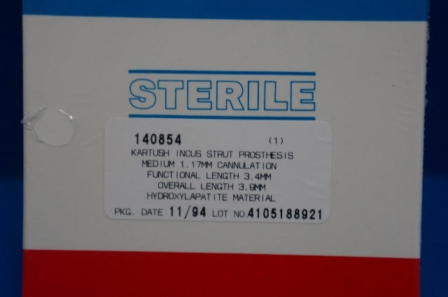 Richards 140854 Kartush Incus Strut Prosthesis Medium 1.17mm Cannulation Function Length 3.4mm, Overall Length 3.9mm Hydroxylapatite Material
