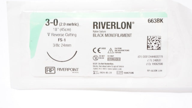 Riverpoint 663BK Riverlon 3-0 18inch, FS-1 24mm, Black Monofilament Nylon Stre.