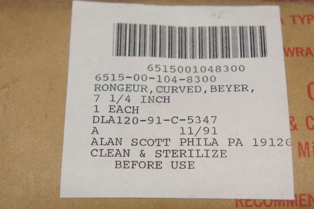 Iii part name assigned by controlling agency: rongeur, beyer, curved, single-action, 7 inch long w/ double springs. for e.n.t. surgery
