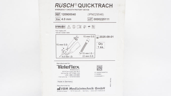 - Rusch 120900040 QUICKTRACH Emergency Cricothyrotomy Device 4.0mm (x)