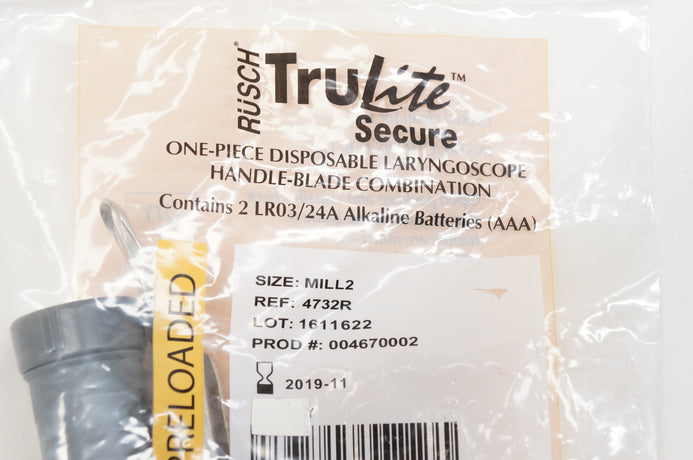 - Rusch 4732R TruLite Secure Disposable Laryngoscope Combination, Mill 2 (x)