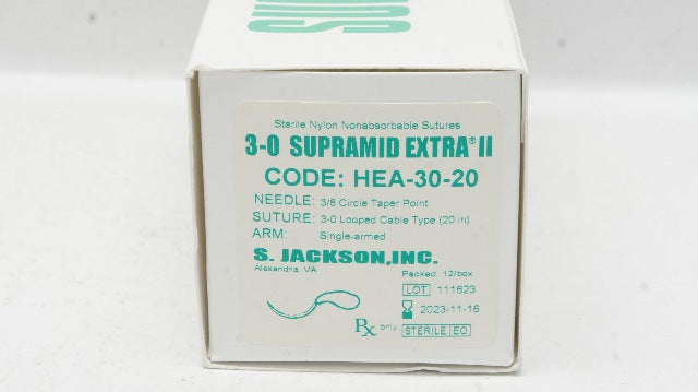- S.Jackson HEA-30-20 3-0 Supramid Nylon Nonabsorbable Stre 20 inch(x) - Box of 11