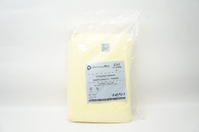 - S2S Global 2347 PremierPro Isolation Gowns AAMI Level 2 - Yellow XL - Pack of 10