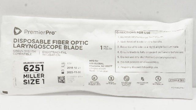 - S2S Global 6251 PremierPro Fiber Optic Laryngoscope Blade MIL 1 (x)