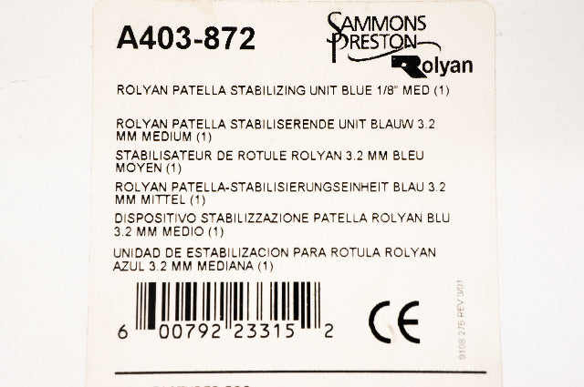 - Sammons Preston A403-872 Rolyan Patella Stabilizing Unit Blue 1/8inch Medium