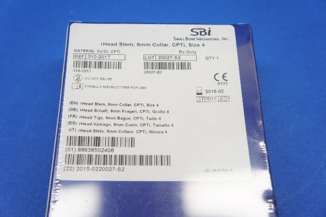 - SBI 310-2017 rHead Stem, 6mm Collar, CPTi, Size 4 (x)