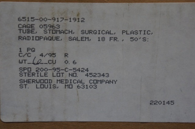 - Sherwood 264986 Salem Sump Tube With Radiopaque Sentinel Line 18Fr. - Box of 50