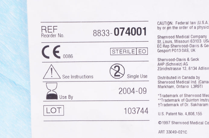 Sherwood 8833-074001 Cuffed Silicone Dual Lumen Cath. Kit 13.5 Fr. x 36cm (x)