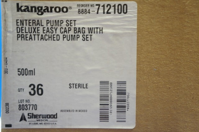 - Sherwood Medical 8884-712100 Kangaroo Enteral Pump Set Deluxe Easy Cap Bag 500ml