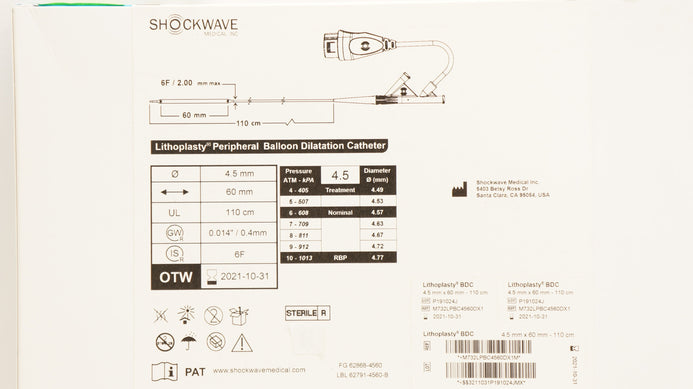 Shockwave M732LPBC4560DX1 Lithoplasty Peripheral Cath. 6F x 4.5mm x 60mm x 110cm