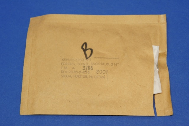Iii part name assigned by controlling agency: forceps towel backhaus 3.5" lg opposed prongs towel clamp crs