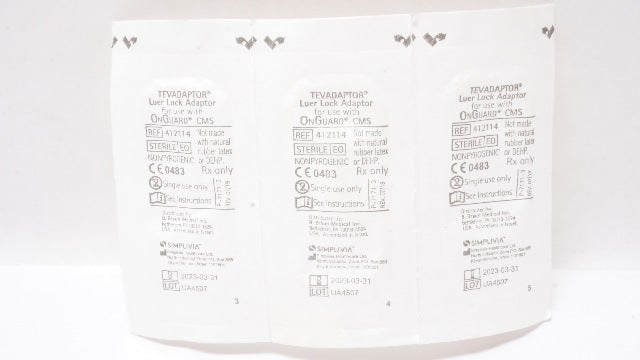 - Simplivia 412114 Tevadaptor Luer Lock Adaptor for Use W/OnGuard CMS-Pack of 3(x)