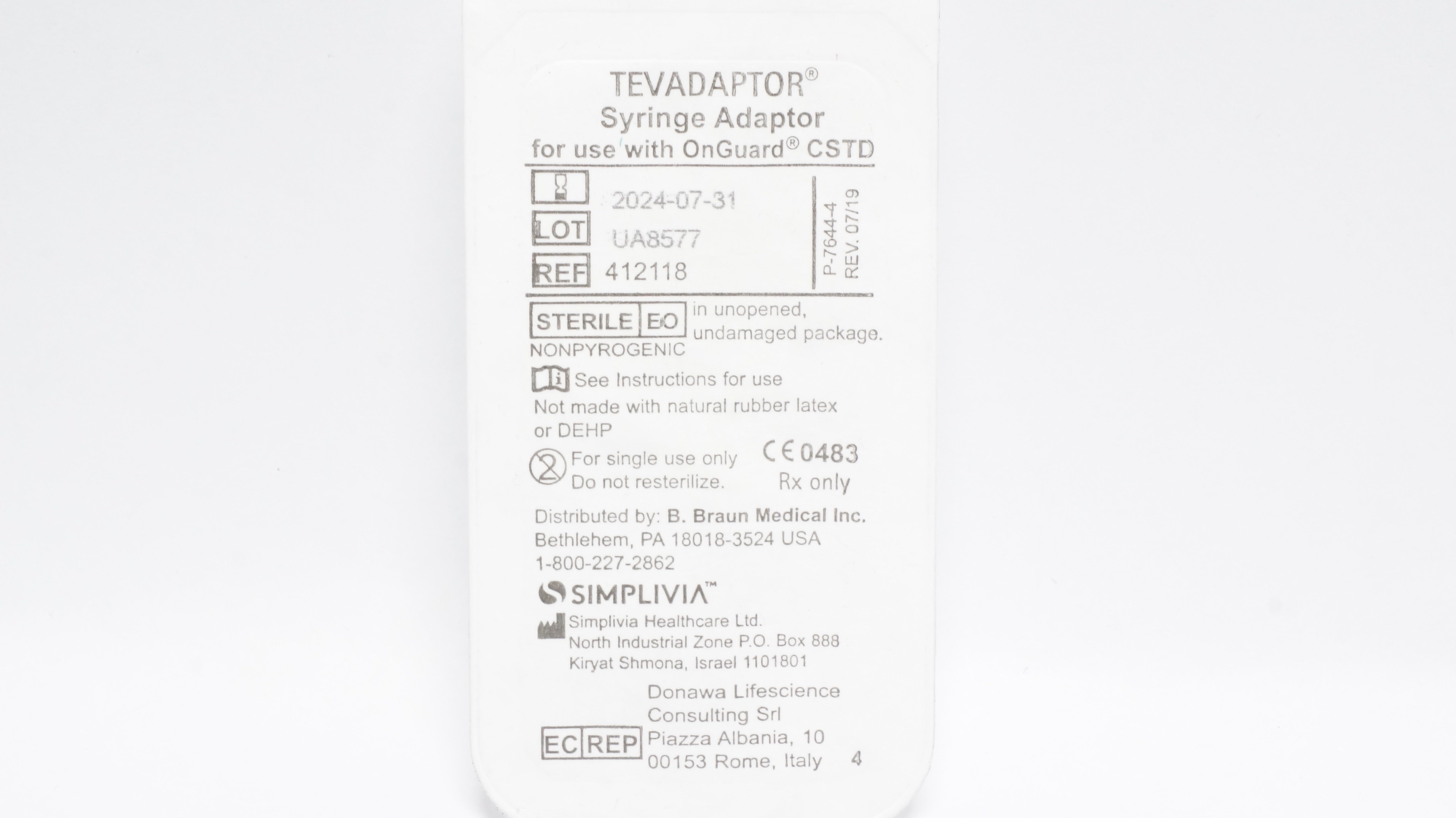 Simplivia 412118 Braun TEVADAPTOR Syringe Adaptor