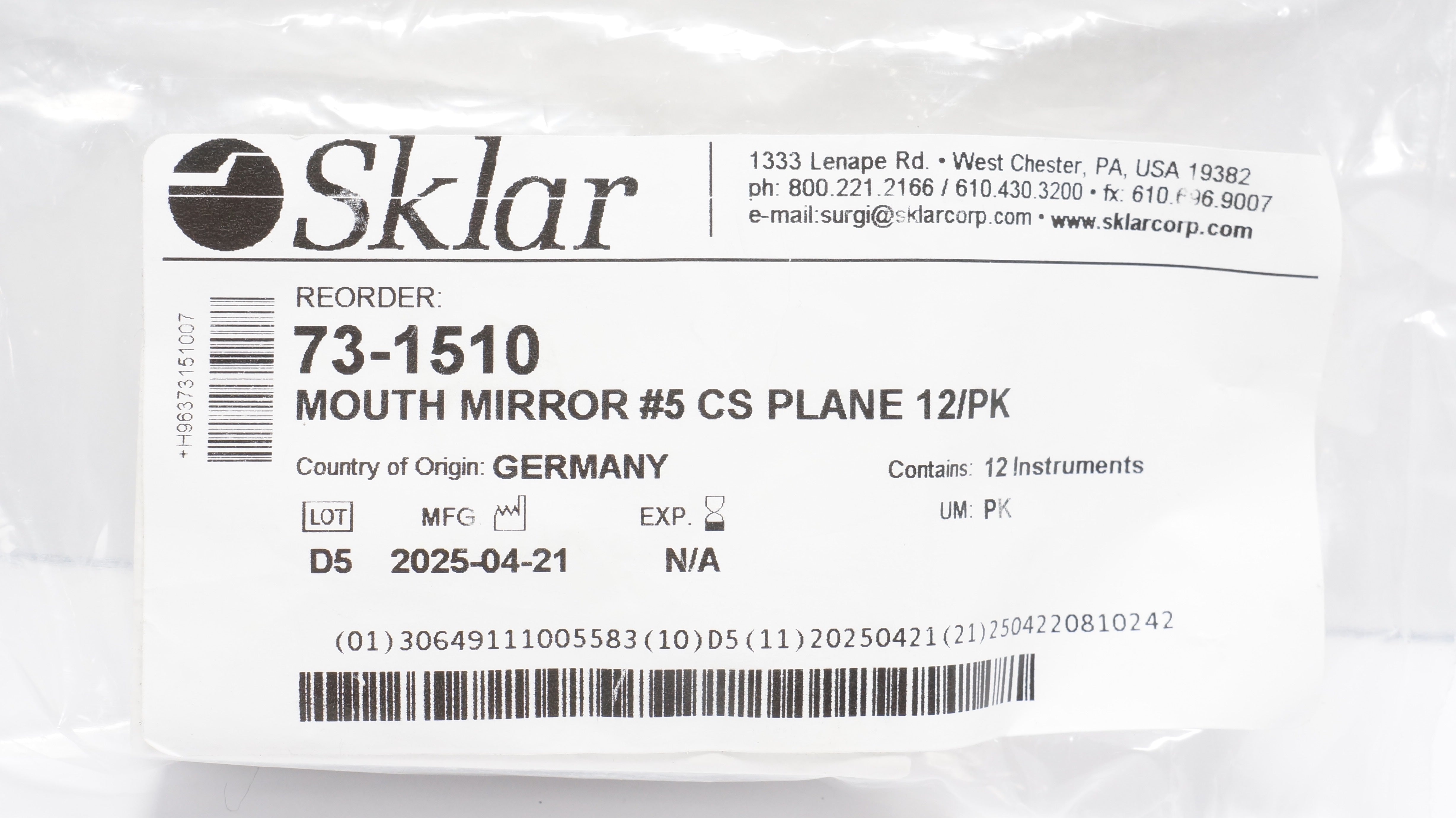 Sklar 73-1510 Mouth Mirror #5 CS PLANE - Pack of 12