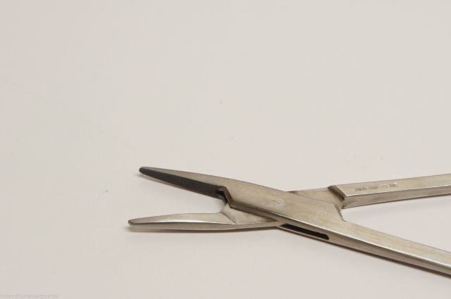 Special features: serrated tungsten carbide jaws; for use in open heart surgery