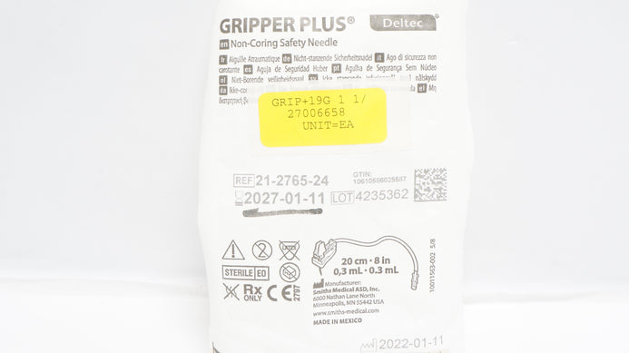 - Smith Medical 21-2765-24 Gripper Deltec Plus Non-Coring Ndle 8inch x 0.3mL