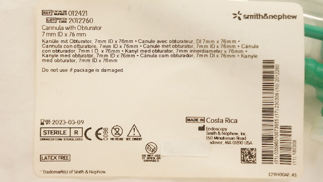 Smith&Nephew 012421 Disposable Cannula Kit with Obturator, 7mm ID x 76mm