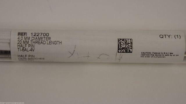 Smith&Nephew 122700 Half Pin 4.0mm x 20mm Thread