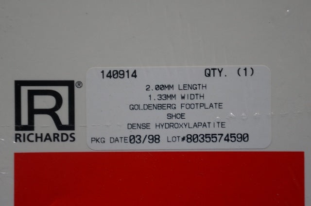 Smith&Nephew 140914 Goldenberg Footplate Shoe Dense Hydroxylapatite 2mm Length, 1.33mm Width