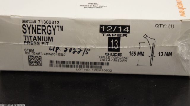 Smith&Nephew 71306813 Synergy Titanium Press Fit Femoral Companent 12/14 Taper Size:13 155mm x 13mm