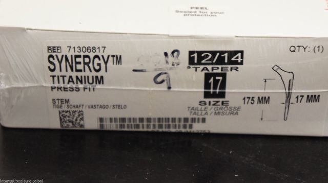 Smith&Nephew 71306817 Synergy Titanium Press Fit Femoral Companent 12/14 Taper Size:17 175mm x 17mm