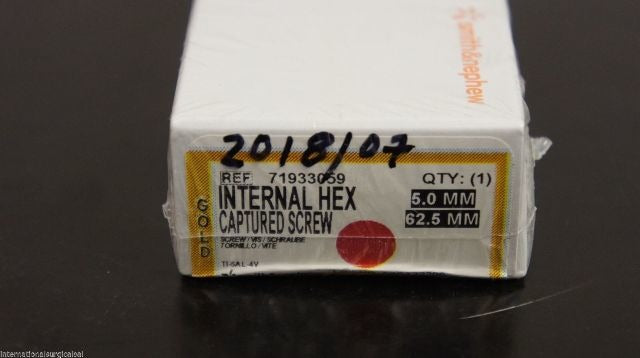 - Smith&Nephew 71933059 Internal HEX Captured Screw 5.0mm x 62.5mm Gold (x)