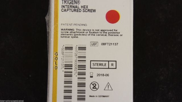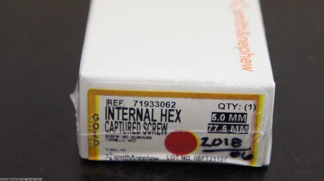 - Smith&Nephew 71933062 Internal HEX Captured Screw 5.0mm x 77.5mm Gold (x)