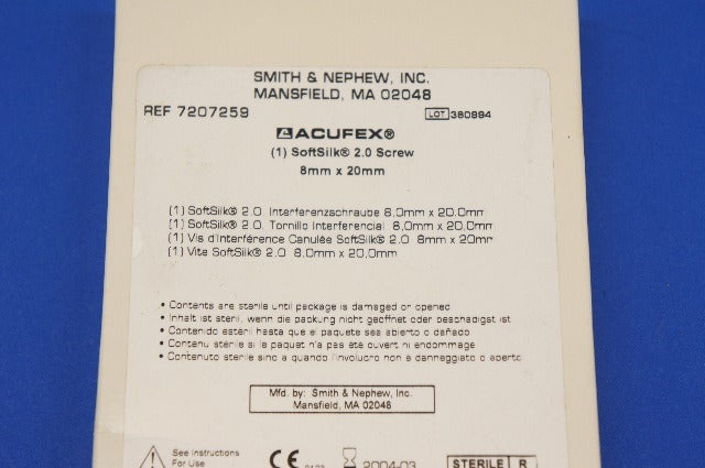 - Smith&Nephew 7207259 ACUFEX SoftSilk 2.0 Screw 8mm x 20mm (x)