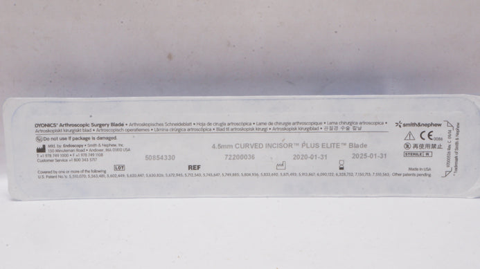 - Smith&Nephew 72200036 DYONICS 4.5mm Curved INCISOR Plus ELITE Blade