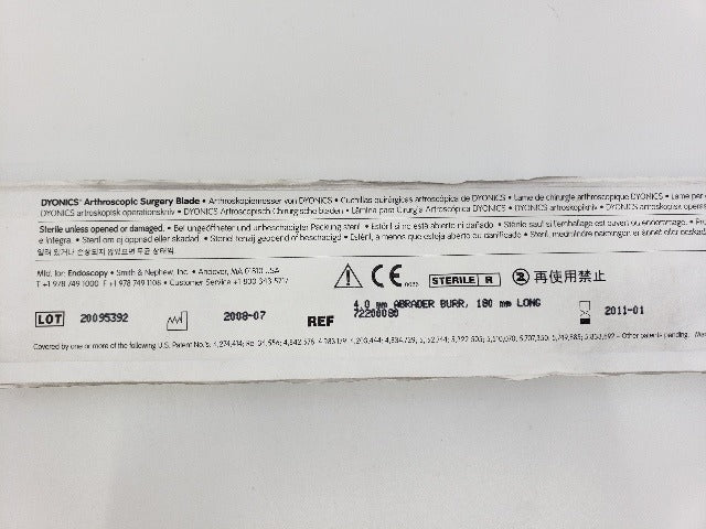 Smith&Nephew 72200080 DYONICS Arthroscopic 4.0mm Abrader Burr, 180mm Long (x)