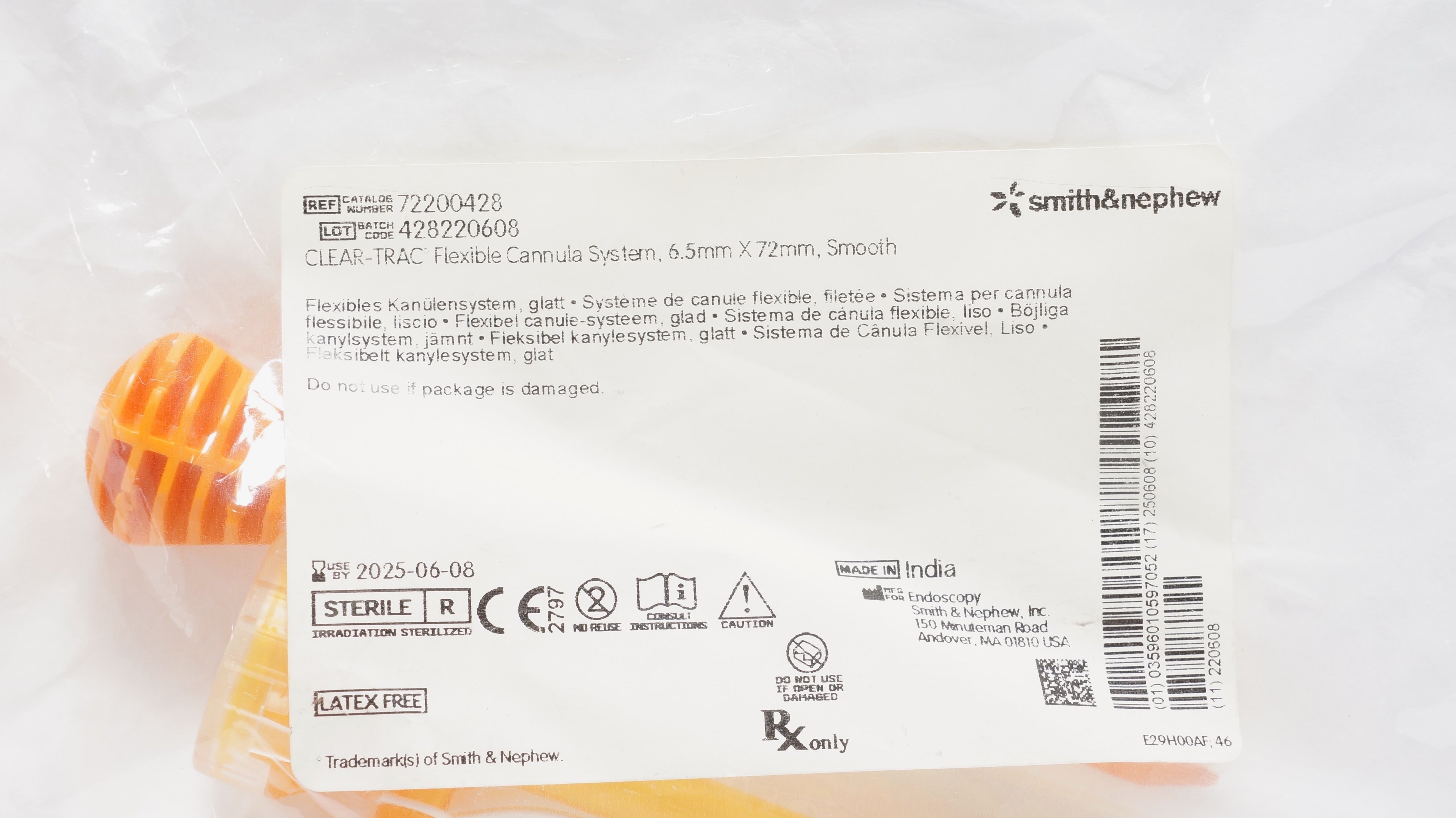 Smith&Nephew 72200428 Clear Trac Flexible Cannula Sustem 6.5mm x 72mm Smooth (x)