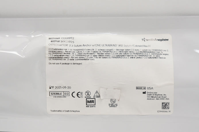 - Smith&Nephew 72201992 Osteoraptor 2.3 Stre Anchor w/One Ultrabraid #2 Stre (x)