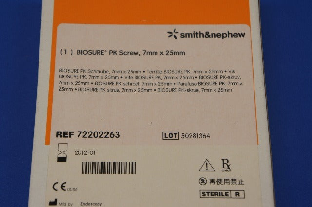 - Smith&Nephew 72202263 BIOSURE PK Screw, 7mm x 25mm (x)