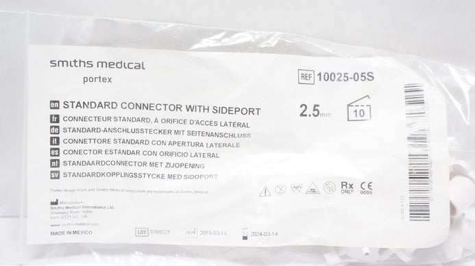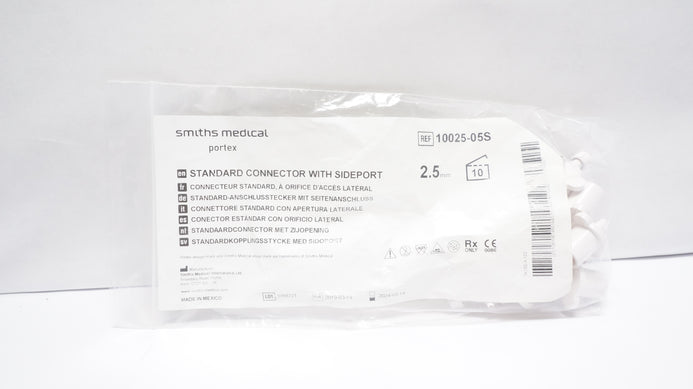 - Smiths Medical 10025-05S Standard Connector W/ Sideport, 2.5 mm (x) - Pack of 10