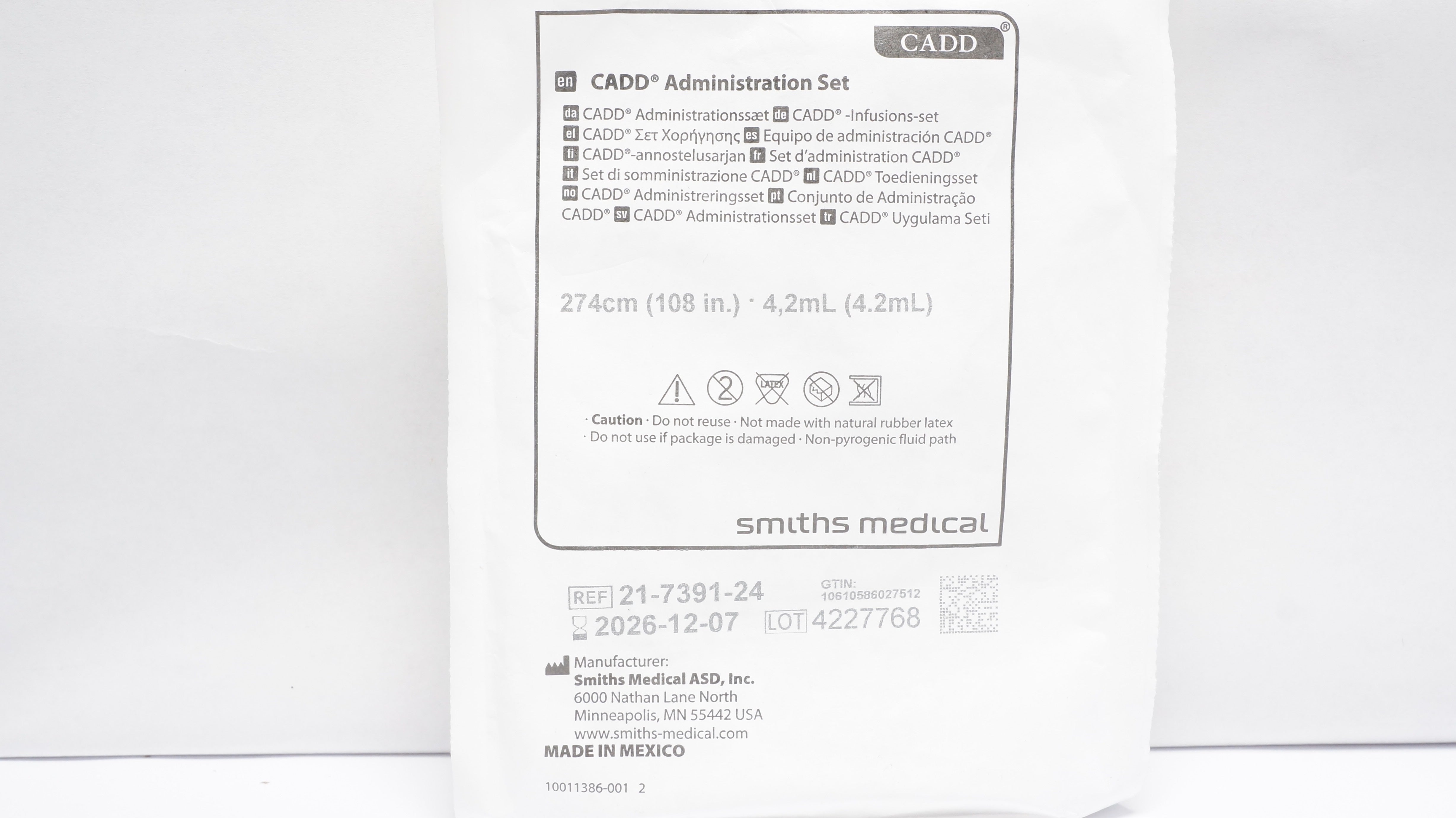 - Smiths Medical 21-7391-24 CADD Administration Set 108In x 4.2mL