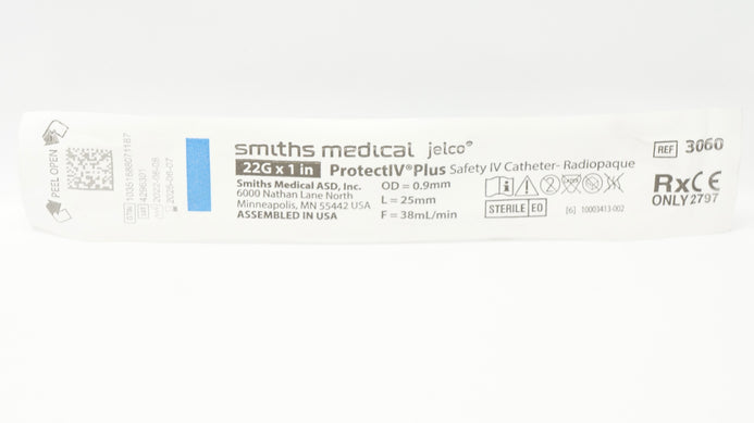 - Smiths Medical 3060 Jelco ProtectIV Plus Safety Cath. 22G x 1inch, 38mL/min